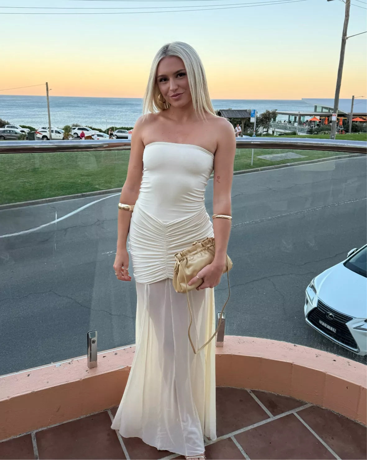 Step into enchanting Stardust Nights with the CASPIAN Slinky And Mesh Off Shoulder Maxi Dress, a captivating blend of allure and sophistication. Boasting a boat neckline and a strapless internal design with an elegant mesh overlay, this dress effortlessly combines glamour with a touch of drama. Ruching detail at the front and back waist enhances your silhouette, ensuring a flattering fit that's as comfortable as stylish. The flowing mesh skirt adds an ethereal charm, while the lined bodice provides comfort and coverage. Perfect for formal events or special occasions, the maxi length exudes grace and refinement, making the Caspian dress a standout choice for evenings filled with magical moments.