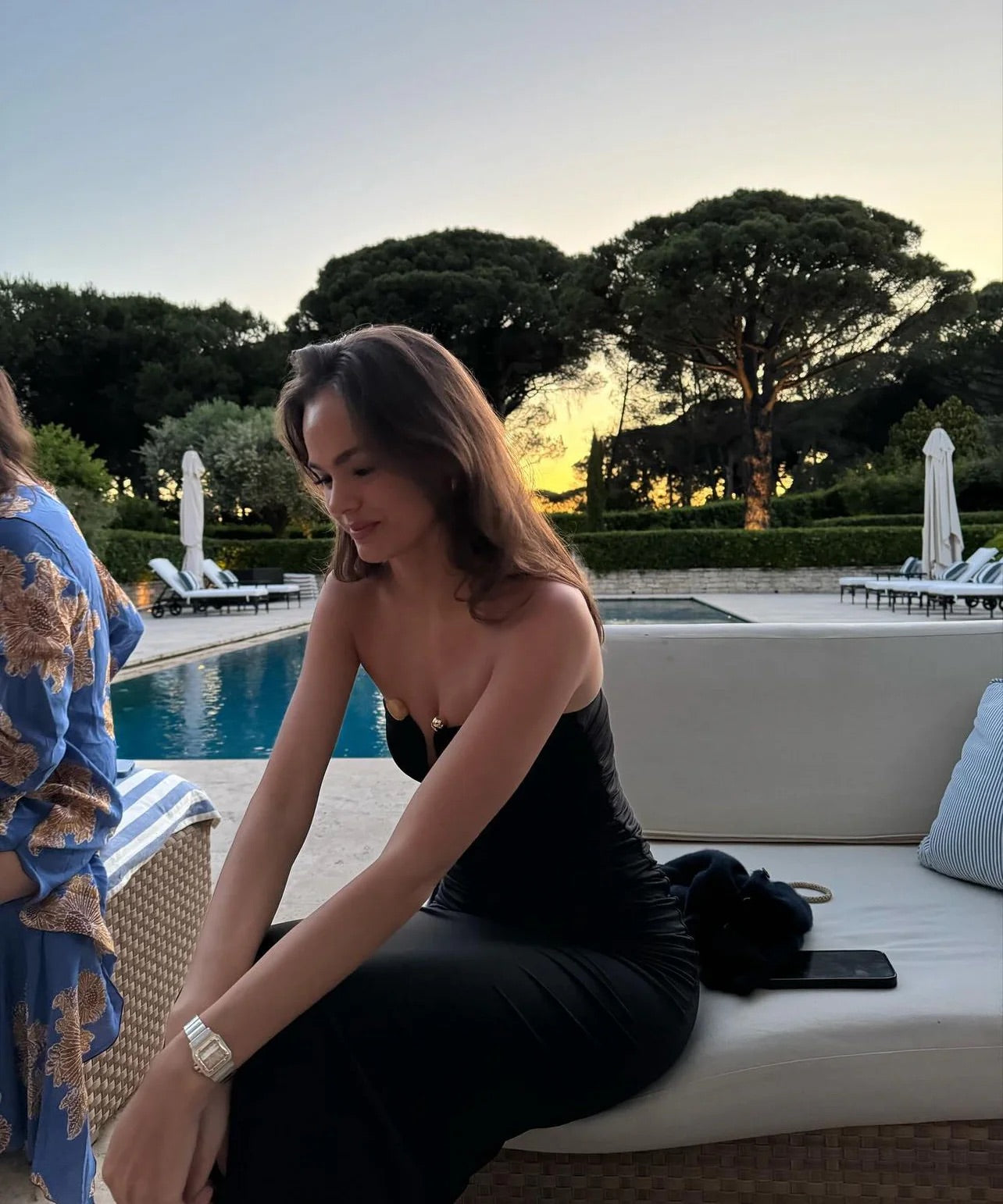 Introducing the Tayla Trim Maxi Dress in a classic Black colourway. Designed with ruching along the silhouette, a strapless neckline, and bold beaded detailing, this maxi dress is the epitome of luxury. The structured centre trim provides a flattering fit, while our signature polyamide fabric allows for comfort and a seamless finish.