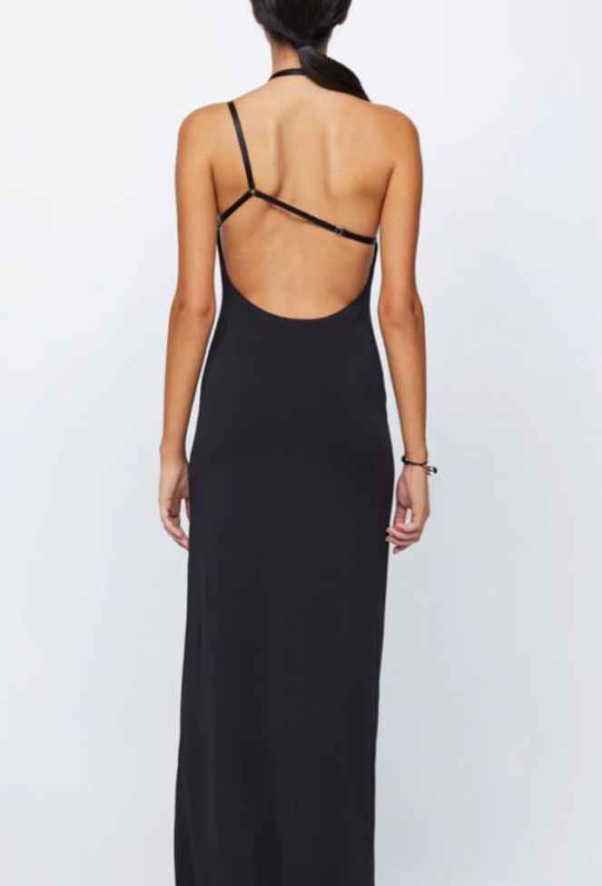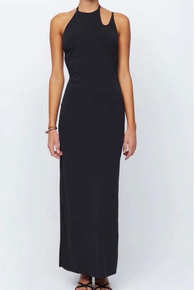 The Bec + Bridge Zadie Asym Maxi Dress in Black is cut in a flattering silhouette featuring tasteful strap detailing at the halter neck and left shoulder that leads to a show-stopping open back. This elegant yet edgy asymmetrical dress features scoop detailing at the neckline, metal o-rings and adjustable straps. The Zadie Asym Maxi Dress is designed for a fitted silhouette and is accessed through pull-on styling.