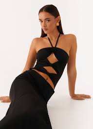 The Zena Halterneck Midi Dress is pure allure, designed for those unforgettable nights. With a flattering halterneck and a gathered bust that enhances your shape, this dress effortlessly combines elegance and edge. Bold cutouts add a daring touch, making sure you turn heads from every angle.